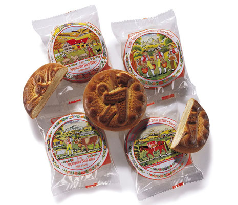 最も流通量の多いビショフベルガーBischoh berger社のビバリの表面には聖ガルスの伝説に登場する木材を運ぶクマさんのレリーフが浮かんで愛らしく、それを包むパッケージにはアッペンツェル出身の農民画家によって描かれた四季折々の生活風景がプリントされて、中身はどれも同じと知りながら全てのデザインが欲しくて買い求めてしまうのです。でも大丈夫。油脂が使われず、蜂蜜とスパイスのバランスが絶妙なビバリは、胸焼けすることも、食べ過ぎて苦しくなるなんていうこともありませんから。