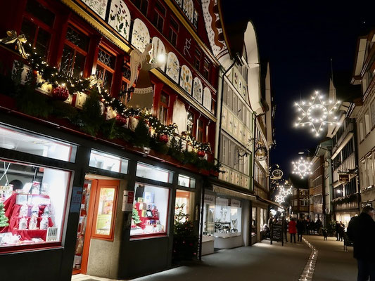 チューリッヒから列車でザンクトガレンへ さらに私鉄に乗換えて45分ほど走るとアッペンツェル・インナーローデン準州の州都アッペンツェルに到着します。駅前から続くおおらかな並木道が迎えてくれるこの小さな村では山での放牧と酪農、副業の養豚がさかんで、雪の多い冬の間 女性たちは刺繍をして過ごしてきました。街の中心を横切るメイン通り「ハウプトガッセ」には教会、礼拝堂、修道院、市庁舎など16~17世紀の建物に続いて商店が連なります。独特の切妻屋根の建物に描かれた色鮮やかで可愛らしい壁画や看板を眺めながらの散策はおとぎの国に迷いこんだかのようで心地よく、昔ながらの製法を受け継ぐビールやチーズ、レースや織物、カウベル飾りなどの特産品はどれもとびきり美味しく個性溢れて魅力的 観光客にも人気です。